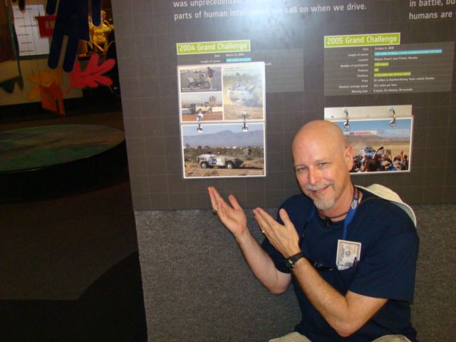 RoBob and I took a break from evangelism to visit the Smithsonian History Museum in Washington DC. Bob is a Roboticist and the Smithsonian had a display that included a picture of the robot car he worked on in the DARPA Grand Challenge race. What a thrill it was to see my own personal scientist’s work in the Smithsonian. We took many pictures (see Photogallery under New York Bobs Robot in the Smithsonian.)